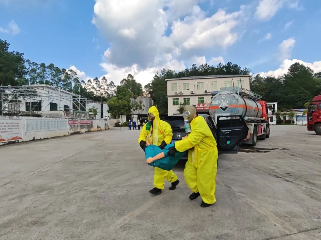 為進一步提高員工安全意識,檢驗公司生產(chǎn)安全事故應急預案體系的科學性、銜接性和可操作性,增強對氨水泄漏事故專項應急處置能力,確保事故發(fā)生后能夠及時、高效、有序地進行應急處置工作,2025年10月16日下午,海龍化工及海龍運輸公司在文?;S區(qū)組織開展了相關應急演練活動,公司董事長賴仕海先生出席了此次活動。