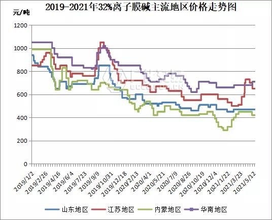 截止5月19日,國內(nèi)主流地區(qū)液堿市場參考價格如下: