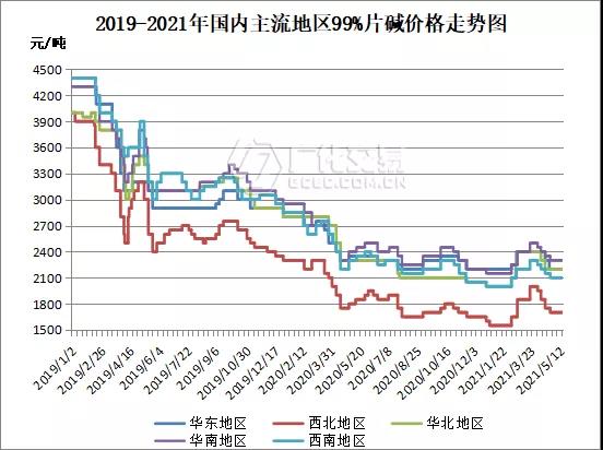 截止5月19日,國內(nèi)主流地區(qū)片堿市場參考價格如下: